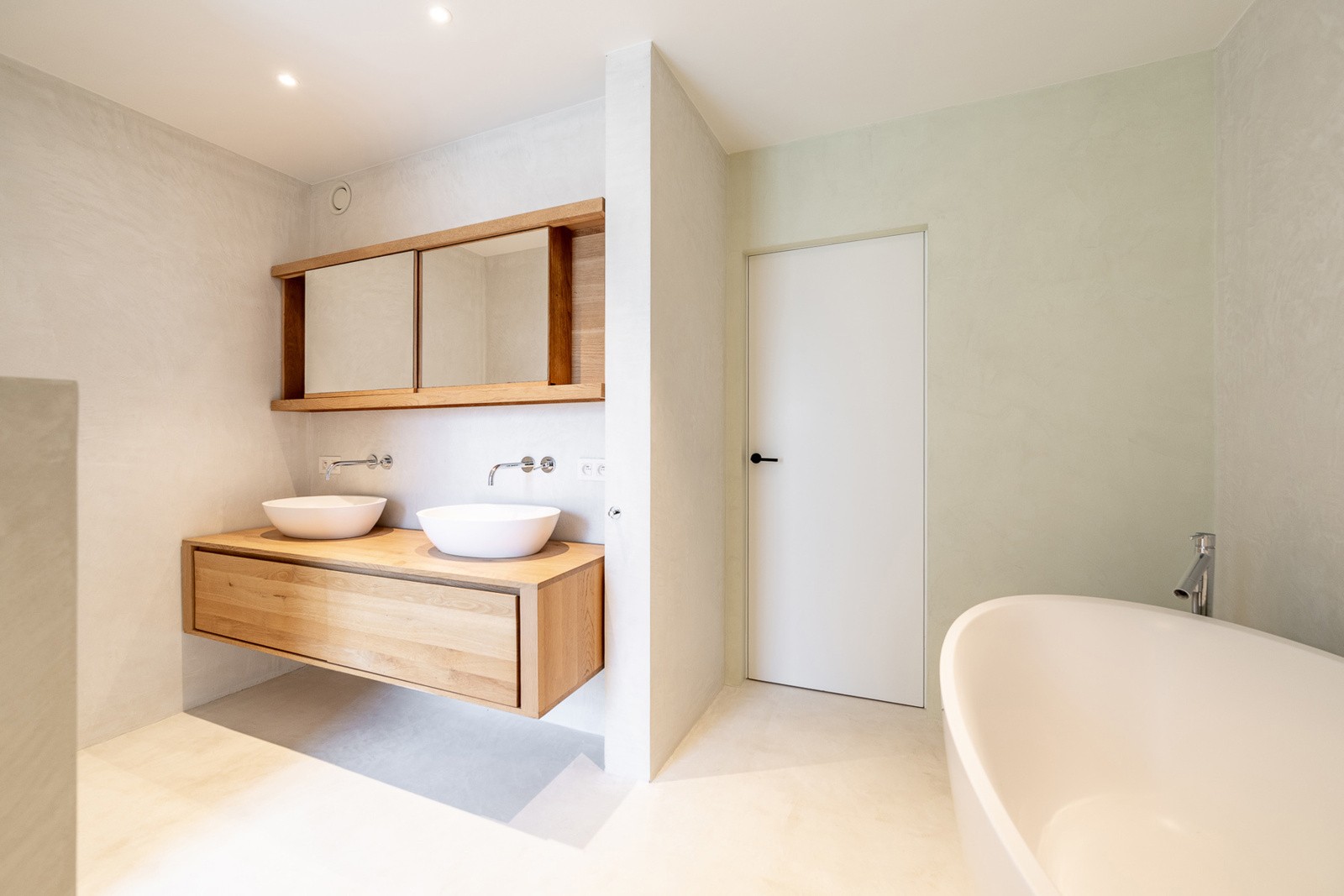 Au rez-de-chaussée se trouvent trois chambres et trois salles de bains, dont une chambre principale avec dressing, baignoire, douche et toilettes séparées.