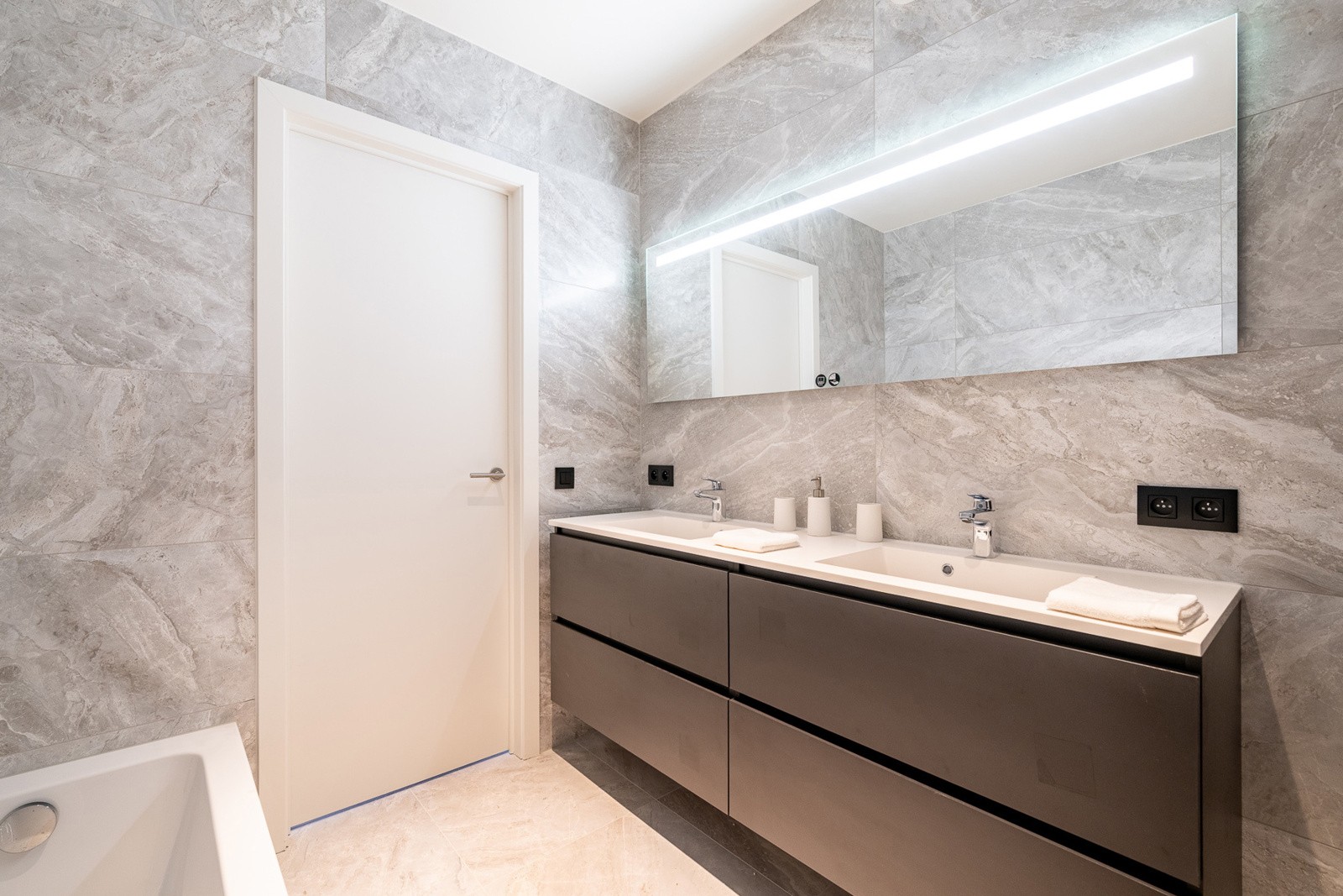 L’appartement dispose de deux chambres à coucher complètes, chacune avec un accès direct à la terrasse et sa propre salle de bains, garantissant ainsi un confort et une intimité optimaux.