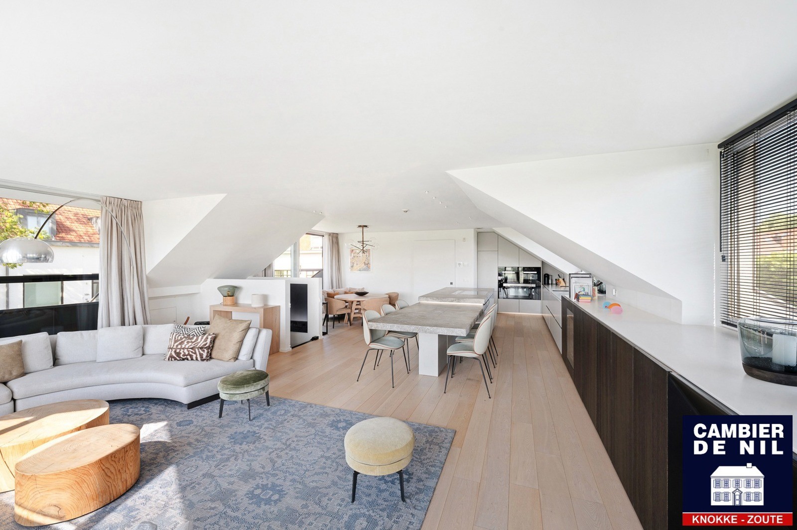 Ce loft exceptionnel bénéficie d'un emplacement de choix dans le Zoute, à proximité de la charmante Oosthoekplein et à quelques pas de la mer, du Zwin et du Royal Zoute Tennis Club. Une combinaison rare d'espace, de lumière, d'intimité et de vues à couper le souffle sur les polders environnants.