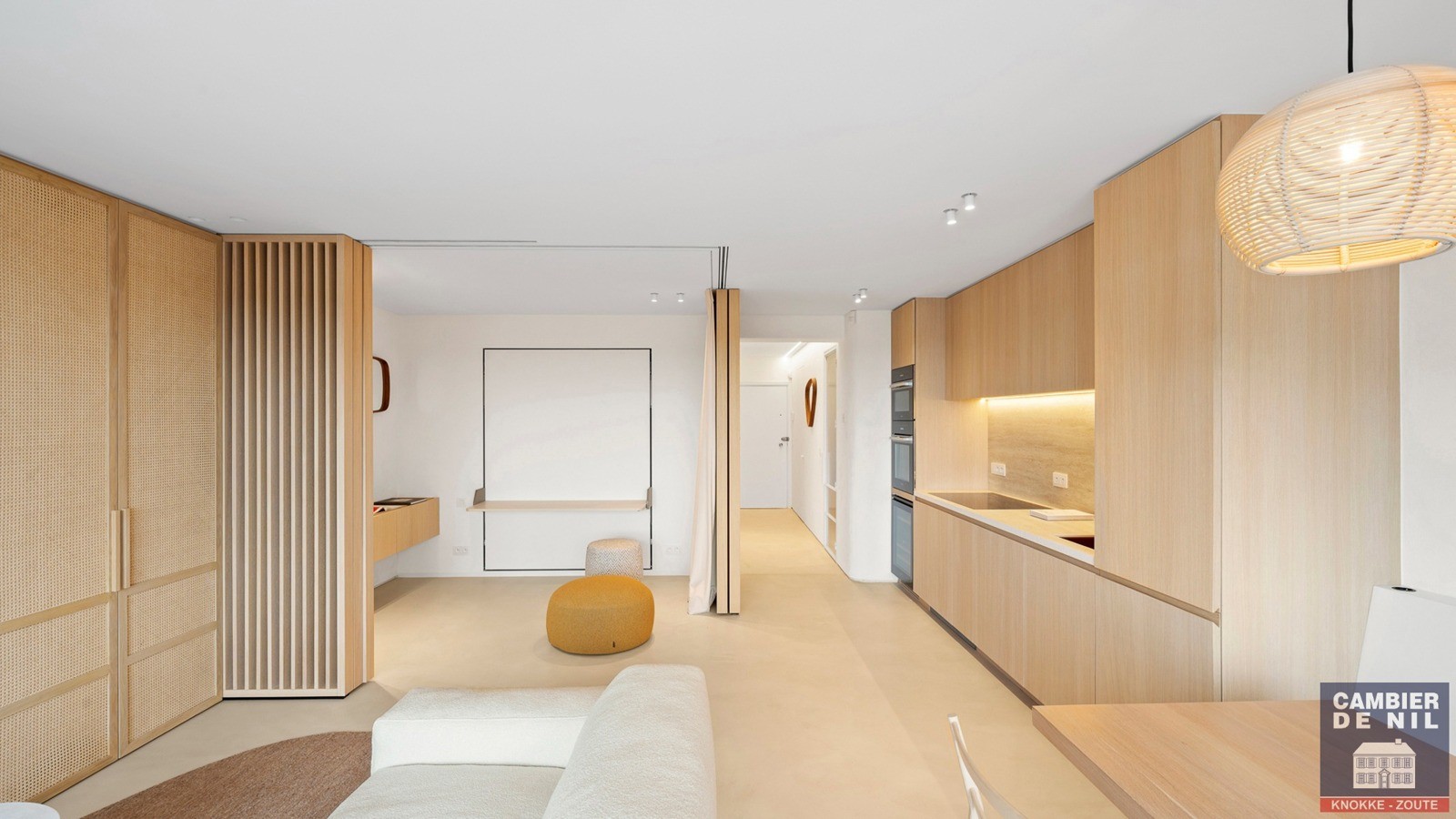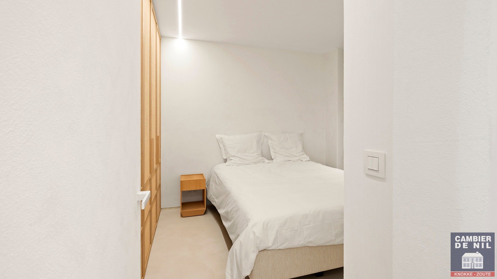 De indeling omvat een elegante inkomhal met apart gastentoilet, een ruime en lichtrijke woonkamer met aansluitend terras dat een uitzonderlijk breed zicht biedt over Het Zoute. De volledig uitgeruste keuken is afgewerkt met hoogwaardige materialen en voorzien van alle moderne toestellen, inclusief een wijnfrigo. Verder beschikt het appartement over twee mooie slaapkamers met ingemaakte kasten en een luxueuze douchekamer met inloopdouche en lavabo.