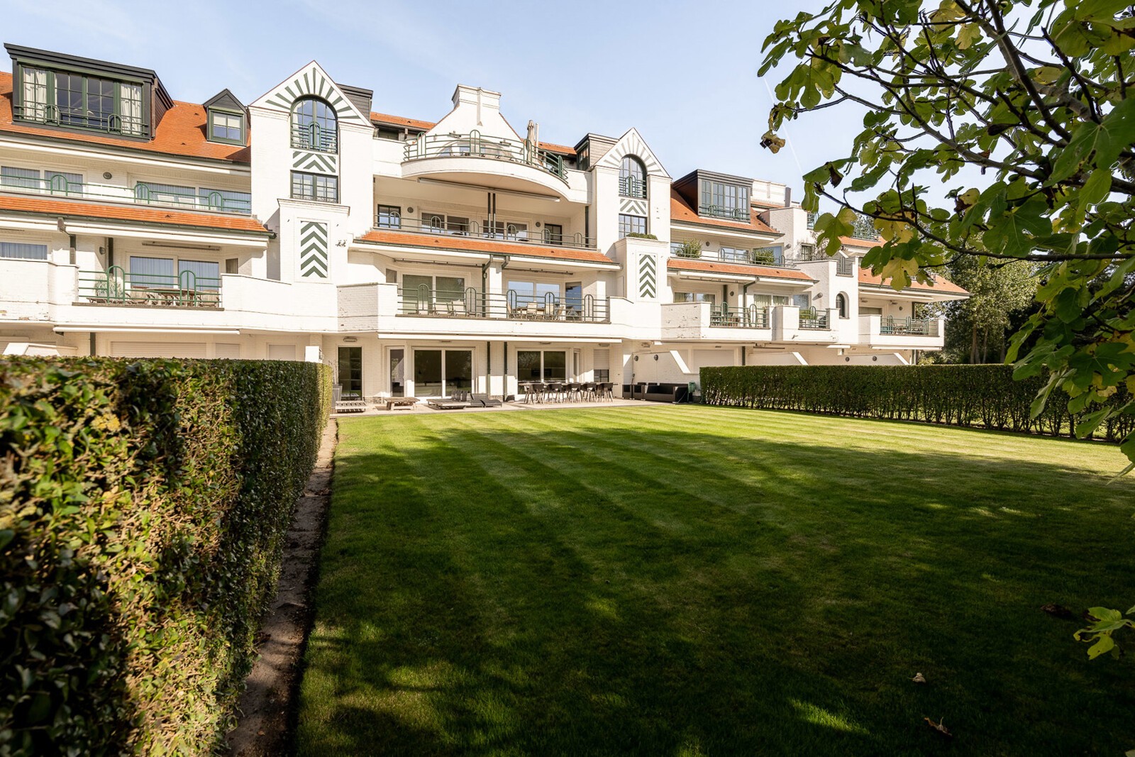 Uitzonderlijk hedendaags 4-slaapkamer appartement (230 m²) met een gevelbreedte van bijna 13m in het prestigieuze en rustige kader van het domein Tennis Gardens (privatief park van 5 ha met binnenzwembad), op slechts enkele stappen van de zee, het Zwin, de tennis en de approach golf.
