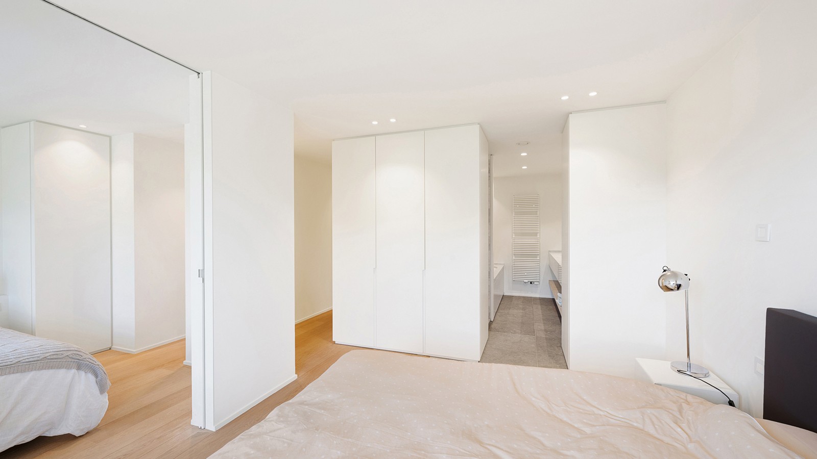 Indeling: Zeer ruime inkomhal met vestiaire en toilet, prachtige leefruimte met veel lichtinval bestaande uit zithoek, eetgedeelte en prachtige open keuken, master bedroom met dressing en badkamer (bad, douche en dubbele lavabo). Drie andere slaapkamers elk met eigen bad- of douchekamer. Veel bergruimte en ingemaakte kasten. Garage voor twee wagens (achter elkaar) in de residentie en een ruime kelder. Conciërge.