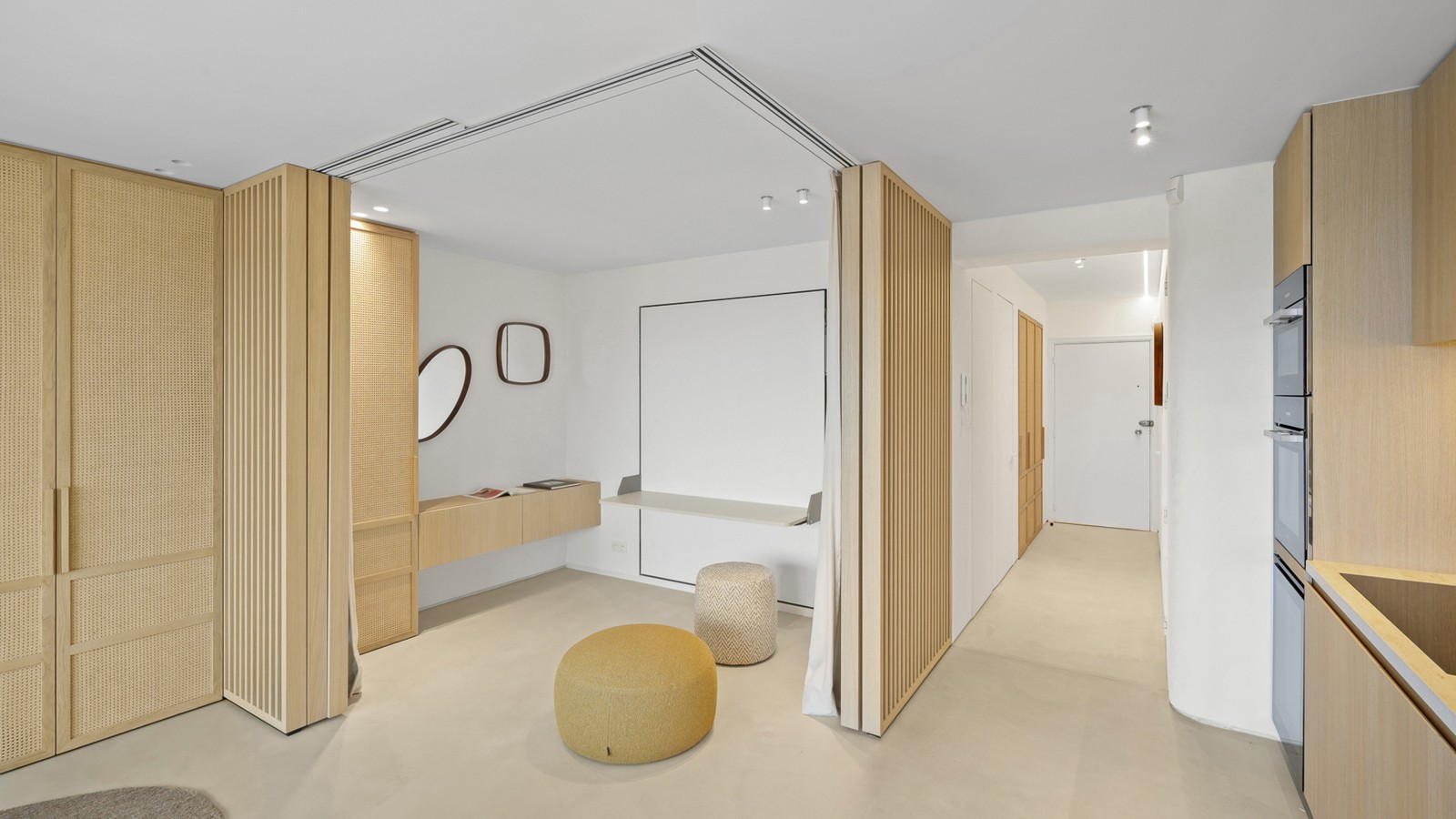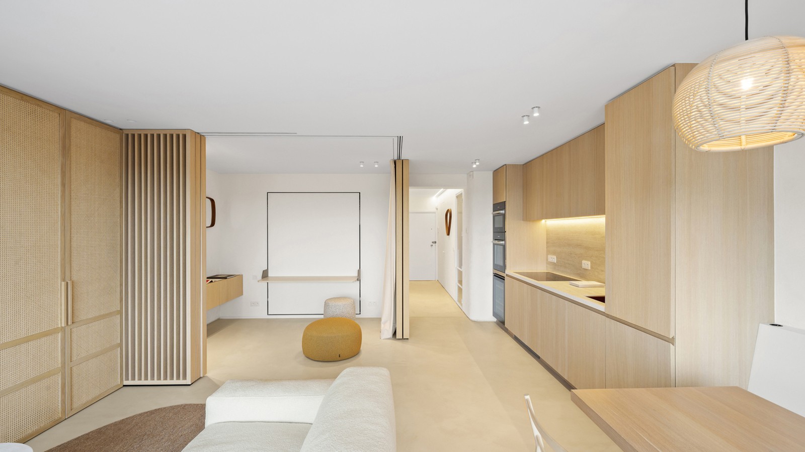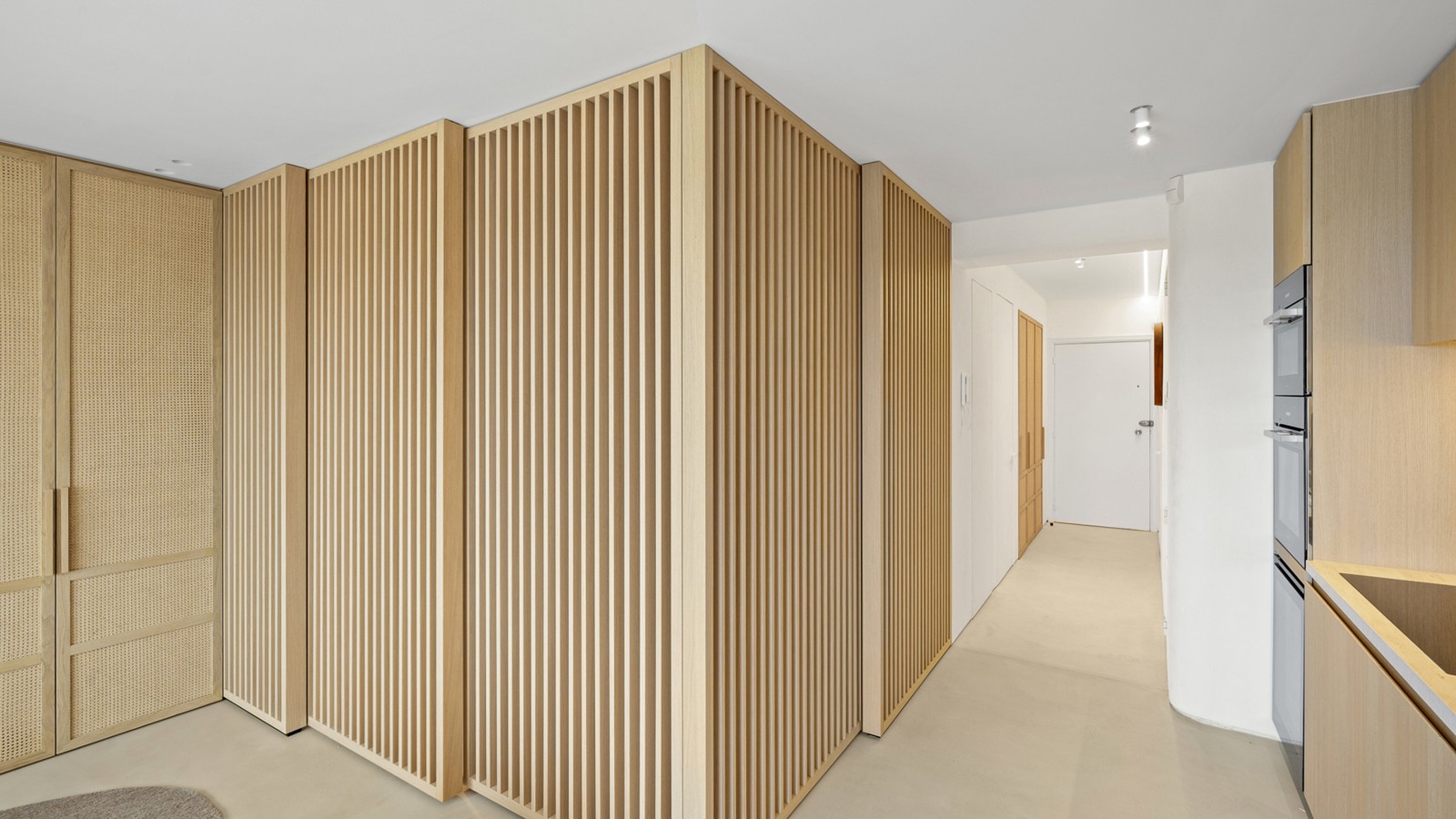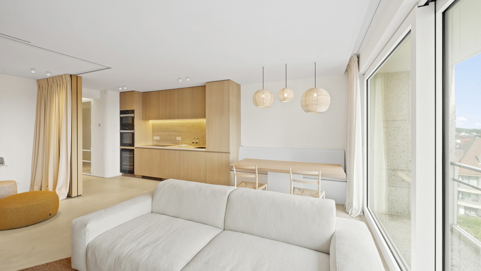 De indeling omvat een elegante inkomhal met apart gastentoilet, een ruime en lichtrijke woonkamer met aansluitend terras dat een uitzonderlijk breed zicht biedt over Het Zoute. De volledig uitgeruste keuken is afgewerkt met hoogwaardige materialen en voorzien van alle moderne toestellen, inclusief een wijnfrigo. Verder beschikt het appartement over twee mooie slaapkamers met ingemaakte kasten en een luxueuze douchekamer met inloopdouche en lavabo.