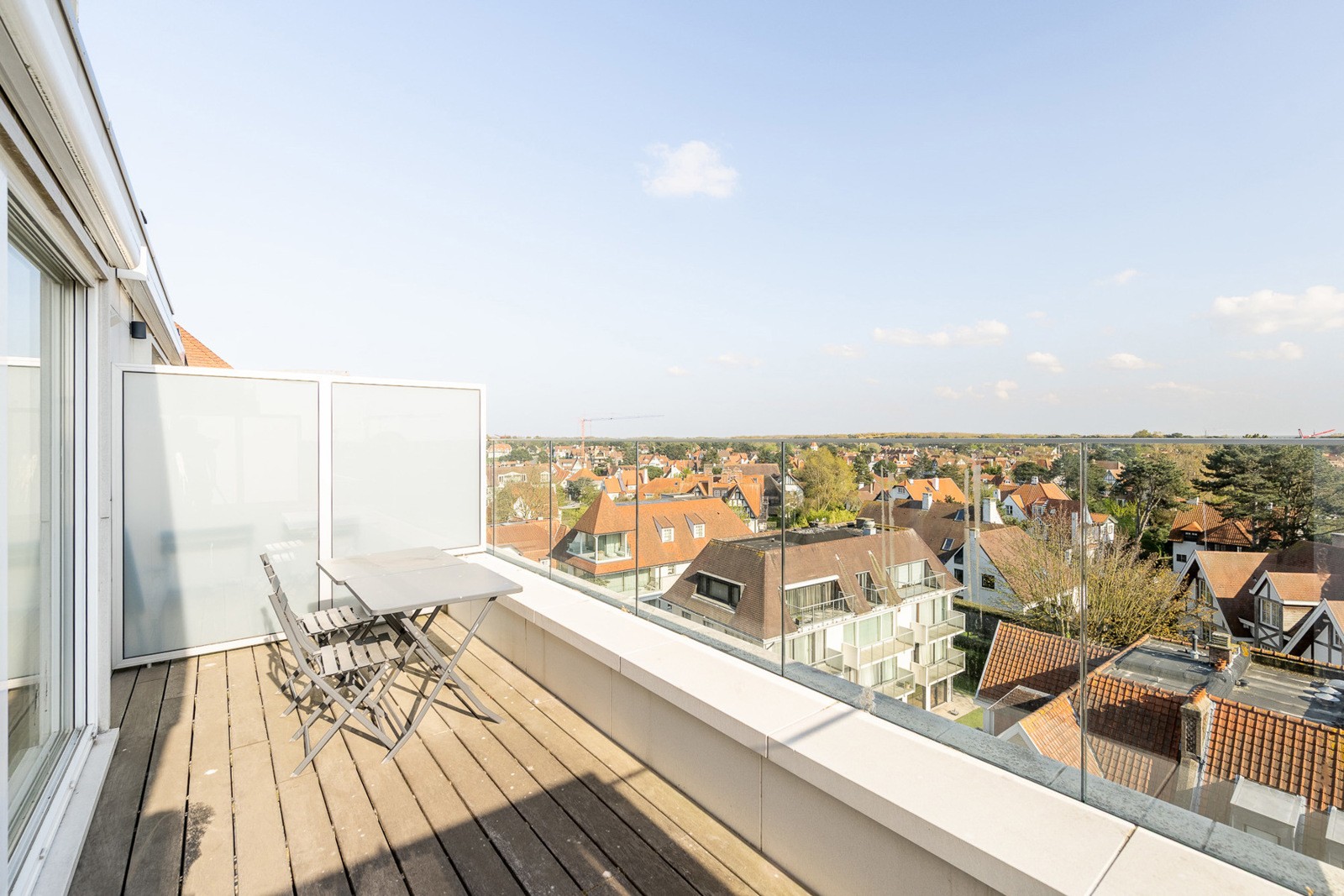 Dit instapklare appartement beschikt over een zuidgericht terras met open zicht op de karaktervolle villa’s van het Zoute.